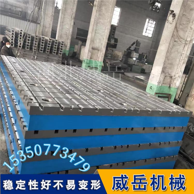 试验铁地板能成为电机性能测试的“稳定基础”,核心源于其材质与结构的科学设计,而安装基准的设计更是重中之重,需围绕“抗振、准、适配”三大核心要点展开。首先是材质选型与时效处理,电机测试中高频振动(50-2000Hz)与动态载荷(10-50kN)要求试验铁地板兼具高刚性与高阻尼,优先选用QT600球墨铸铁或HT350灰铸铁,抗拉强度≥300MPa、抗压强度≥900MPa,经550℃高温时效(保温4-6小时)+6个月自然时效处理,残余应力去除率≥90%,避免长期振动导致变形。某电机厂选用未经时效处理的