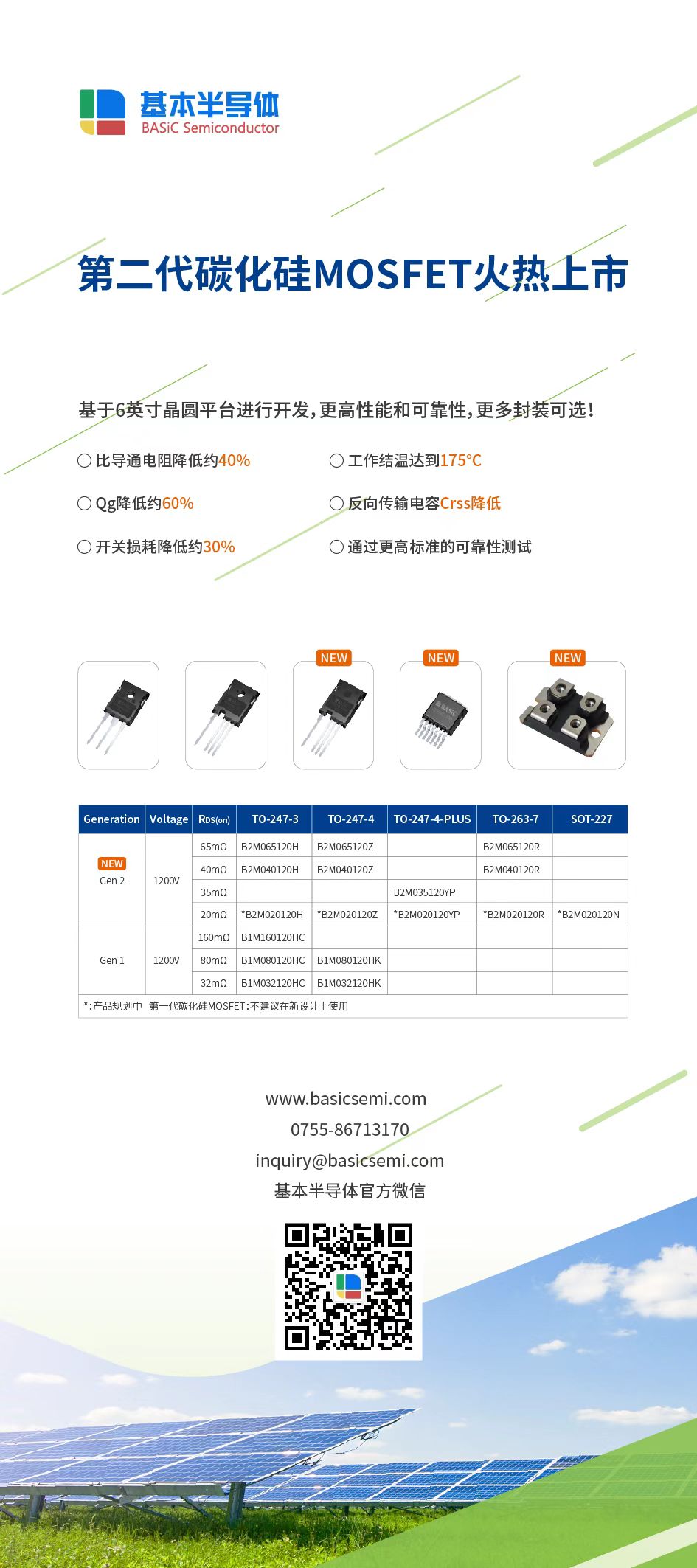 基本半导体第二代碳化硅MOSFET亮点