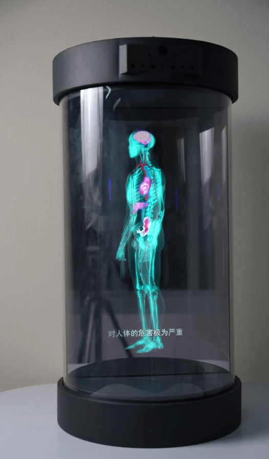 虚拟讲解员采用全息成像技术,将真人或者动画投影到选定的位置,从远处看真假难辨。通常在展馆或展厅的入口处,有一面透明的全息屏幕,当参观者走近时屏幕时会自动感知到观众的到来,透明的屏幕上会呈现出一个与真人一样大小的虚拟人物影像,做出欢迎的手势并向参观者打招呼问候,同时开始作一些关于展馆或展厅的基本介绍、功能分区、参观浏览顺序等。