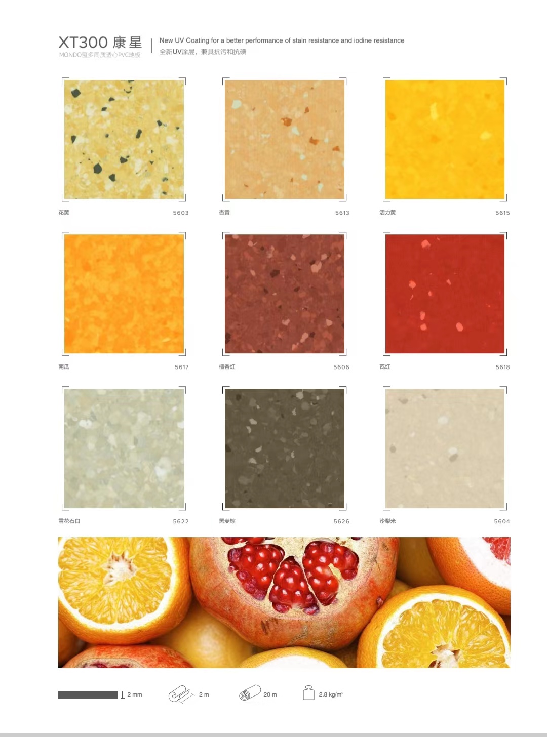 2. 耐磨性强,经久耐用。符合EN649 T级耐磨要求,使用等级最高可达43级,适用于高人流量区域。