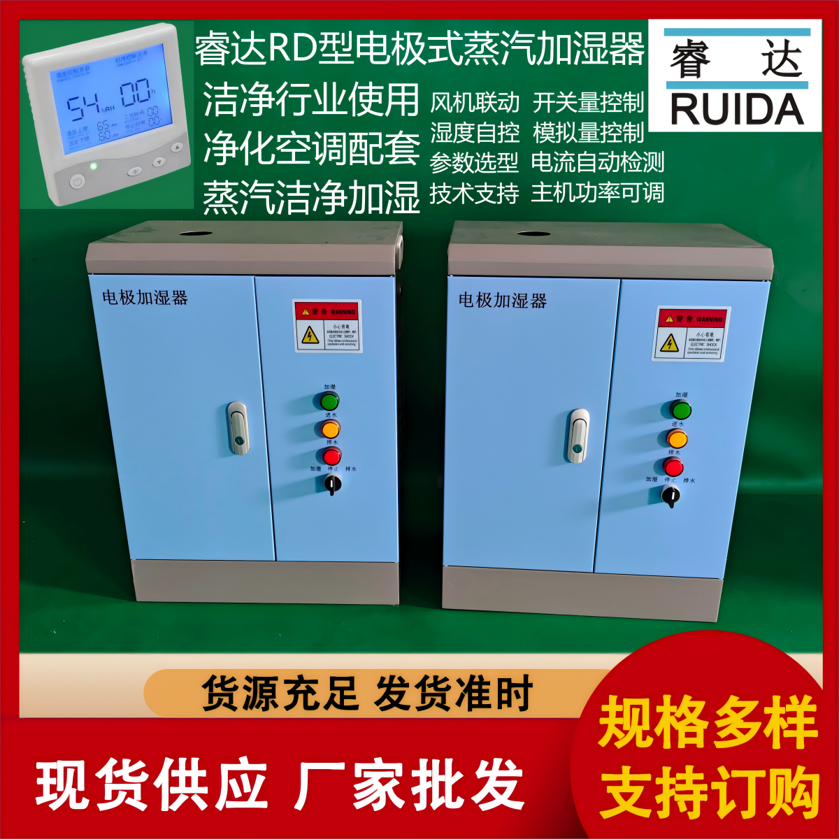 本公司电极式加湿器自配湿度控制器,也可选择开关量、模拟量、比例量远程控制,电极式加湿器适用行业:净化工程配套使用,净化空调配套加湿,洁净室,实验室用,大型空调机组用。电极式加湿器是洁净等温加湿,加湿均匀,蒸汽输出量在5-120kg/h可选。电极式加湿器结构紧凑,占用空间小,蒸汽加湿,主机外观设计美观大方,同时注重功能与配套的组合。洁净加湿安装紧凑.