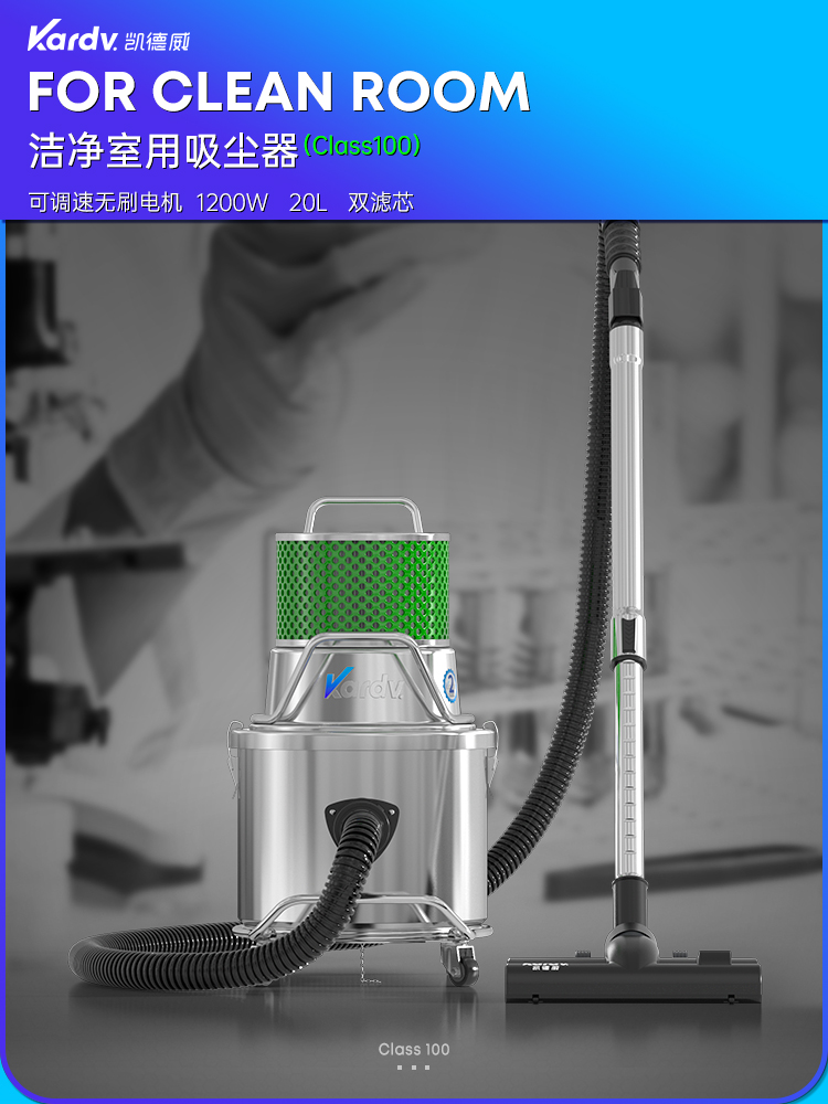 SK-1220B是由乐容实业自主设计、研发、生产的一款适用于洁净车间清洁使用的吸尘器(建议class100)。主要部件采用不锈钢材质,坚固久用,外观新颖大方,动力源采用1200W无刷电机并配合变速电控系统,吸力大小自由调节。过滤系统采用东丽覆膜滤材,总过滤面积300000px²左右。