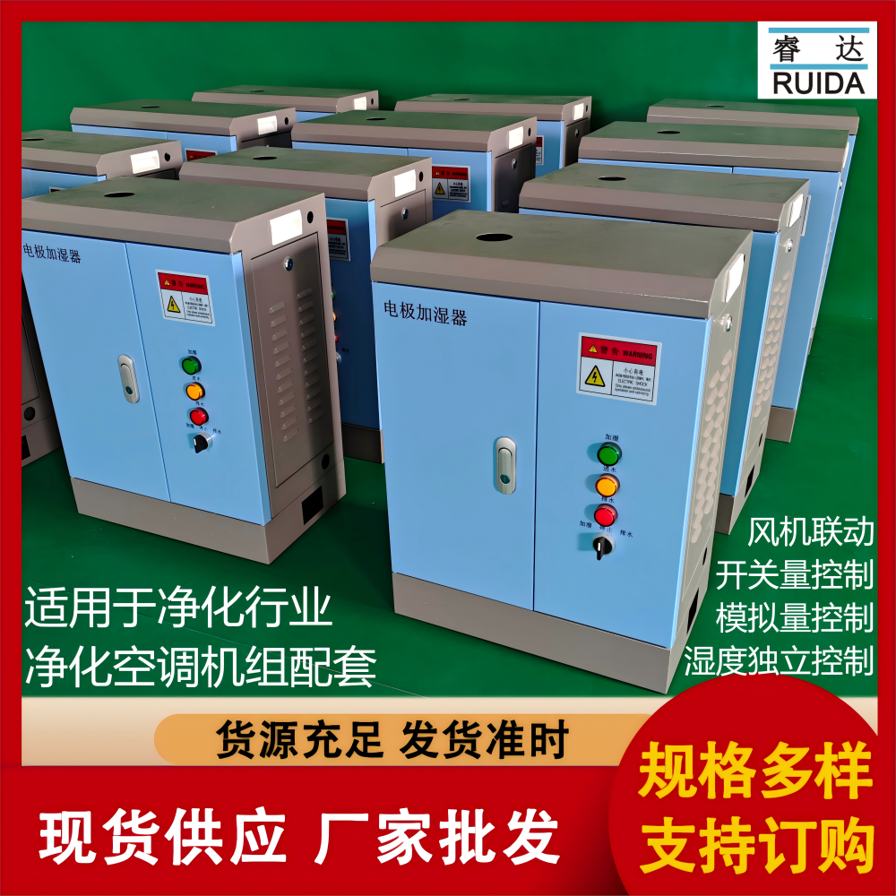 本公司电极式加湿器自配湿度控制器,也可选择开关量、模拟量、比例量远程控制,电极式加湿器适用行业:净化工程配套使用,净化空调配套加湿,洁净室,实验室用,大型空调机组用。电极式加湿器是洁净等温加湿,加湿均匀,蒸汽输出量在5-120kg/h可选。电极式加湿器结构紧凑,占用空间小,蒸汽加湿,主机外观设计美观大方,同时注重功能与配套的组合。洁净加湿安装紧凑.