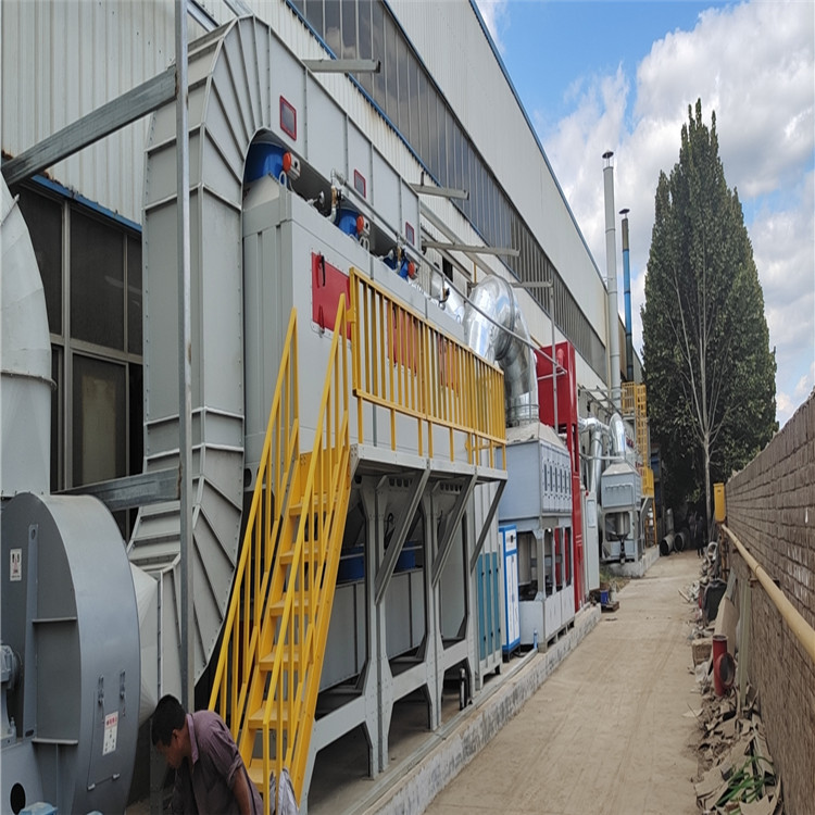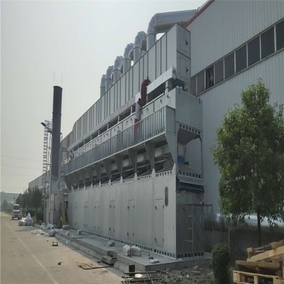 催化燃烧:利用催化剂做中间体,使有机气体在较低的温度下,变成无害的水和二氧化碳气体,即:将饱和的活性炭解析出来的有机气体通过脱附引风机作用送入净化装置,(活性炭脱附下来的有机溶剂为气体)首先通过除尘阻火器系统,然后进入换热器,再送入到加热室,通过加热装置,使气体达到燃烧反应温度,再通过催化床的作用,使有机气体分解成二氧化碳和水,再进入换热器与低温气体进行热交换,使进入的气体温度升高达到反应温度,如达不到反应温度,这样加热系统就可以通过自控系统实现补偿加热,使它完全燃烧,这样节省了能源,废气有效去除率达标排放,符合国家排放标准;催化净化效率97%以上。