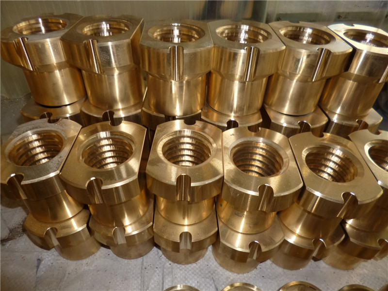 轧机是用于轧制多种铜、铝、不锈钢、碳钢、锋钢、合金材料等扁平或者异型线材的机器。机器内调整螺母是轧机上的部件,要求其组织密,而且要有耐磨性及较高的强度和韧性。为了减少螺丝转动时消耗于螺纹工作面上的摩擦损失,螺丝一般采用合金锻钢,我厂生产的调整螺母的材质主要是ZCuZn24Al6Fe4Mn3,也可以根据客户的要求加工定制。