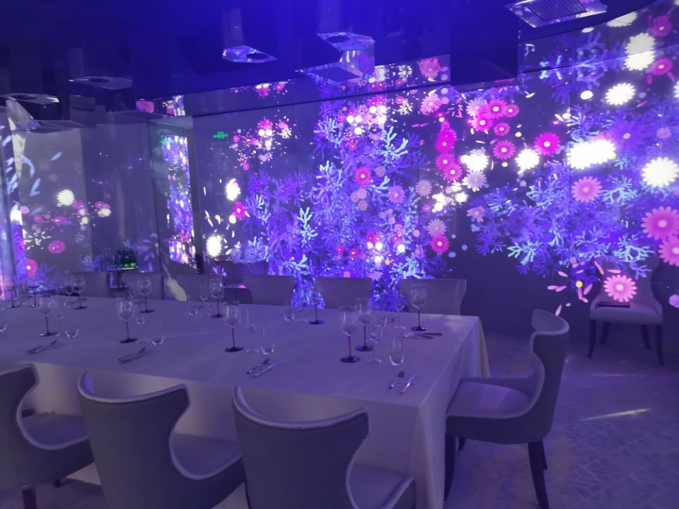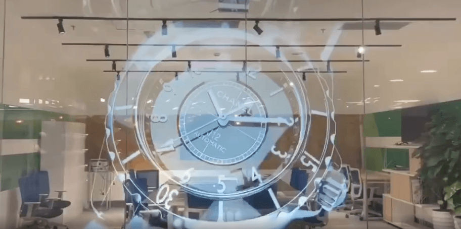 透过漂浮的影像还能看到玻璃墙内部的场景