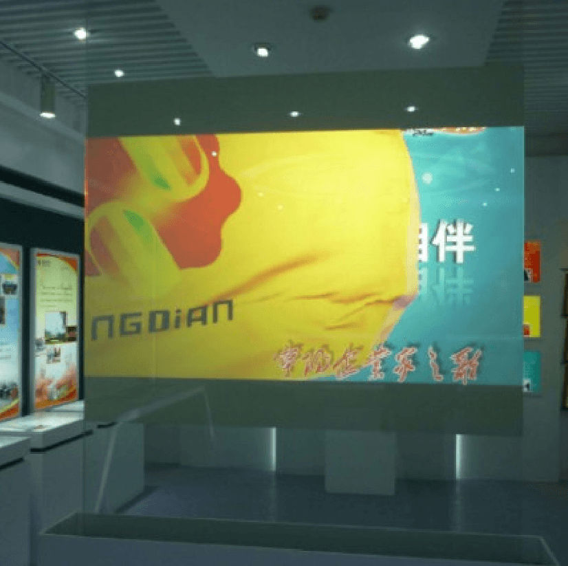 全息透明膜:透明度约90%,适用于贴在透明玻璃上,使投影图像在室内和室外都可见。未投影时,外部人员可以看到室内物品或陈列品。