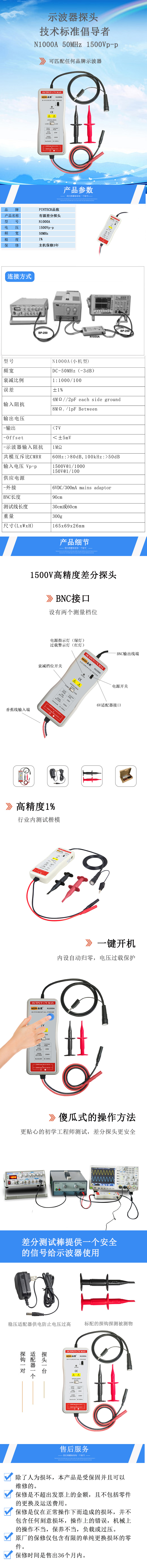 N1000A 频宽DC-50MHz(-3dB), 内设自动归零,电压过载保护,可匹配任何厂牌示波器输入阻抗 ,保修3年, 误差 1%