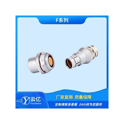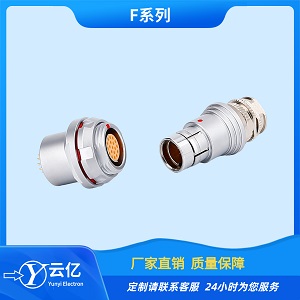 F系列微圆形高密度连接器为分瓣式推入拉出式结构,插合后具有自锁功能,内部采用半园定位片防止误 插,另有其行生T系列和C系列,分别有定位销定位片多 方定位系统,防止相同芯数上的错误插拔,同时还具备 盲插功能,使用起来方便快捷。 该系列连接器具有快速插拔、高密度、防水、小体积、盲插及寿命高等特点。特别适合于高密度安装、相对狭小的空间安装及使用旋转方式插合分离困难的场所。能应用于野外恶劣环境,防护等级1P68。 该连接器被广泛应用于军、民领域的电台设备、医疗设备测试设备、音响设备、数据采集、工业控制、航空航天等场合的直流交流电路的电气连接。