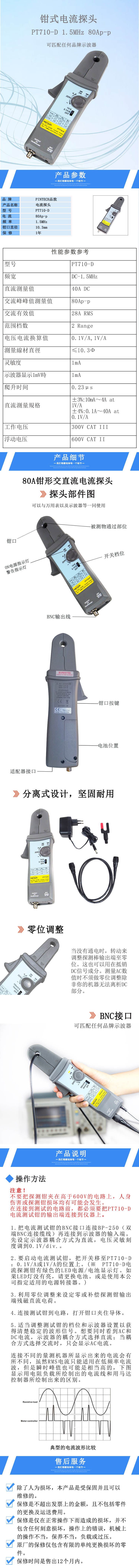 低底噪,高灵敏度交直流电流探头;电池或适配器供电,标配BNC转香蕉插转接头。