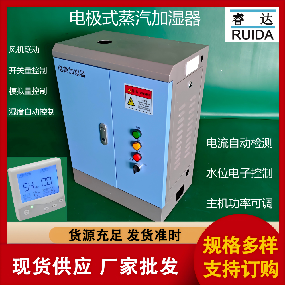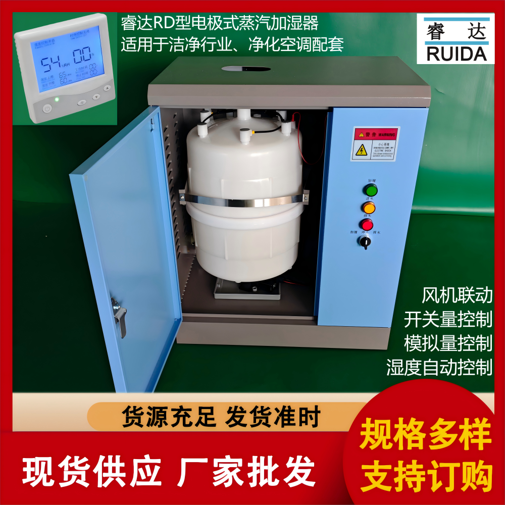 电极式加湿器控制方式:自带温湿度控制器独立控制,也支持开关量,模拟量,比例量调节远程控制.