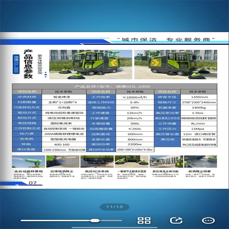电动扫地车、电动道路清扫车、电动吸树叶收集车、电动高压清洗车、电动垃圾车