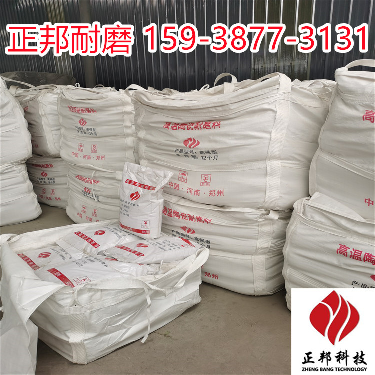 (1)具有较高的机械强度和刚度。陶瓷耐磨涂料主要由耐磨骨料和结合系统组成,密度大,无大的宏观缺陷,强度可达150MPa,是一般混凝土和耐火浇注料无法企及的,主要是采用了离子化合物和部分人工合成共价化合物,其离子键结合牢固,所以强度和刚度很大,可抵御物料的冲击力和剪切应力。而结合系统由于采取复合强化措施和处理,形成化学结合,致使其强度很高。